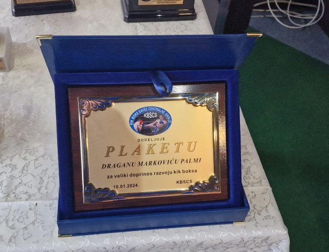 Predsednik Kik boks saveza Centralne Srbije Srđan Radulović, koji je i selektor kik boks reprezentacije Srbije, uručio je posebnu Plaketu Draganu Markoviću Palmi za veliki doprinos razvoju kik boksa.