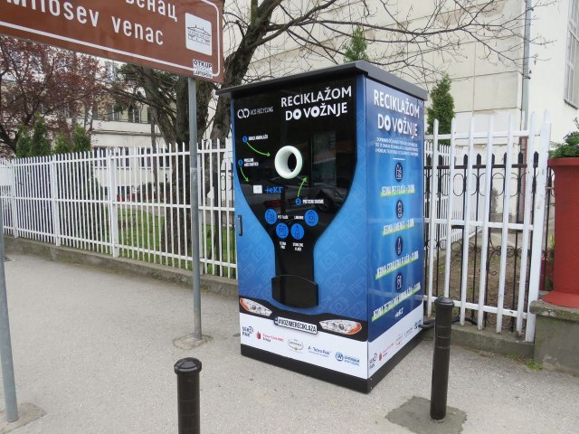 Reciklomat "nagrađuje" - za svaki ubačen komad ambalažnog otpada dobijate 5 dinara na EKG kartici za gradski prevoz, piše InfoKg. Prvi reciklomat je postavljen 1. jula 2020. godine u ulici Kralja Petra, a od nedavno ih ima u više delova grada.