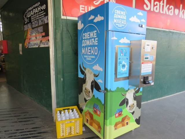 "U želji da obogatimo ponudu pijace Aerodrom potpisali smo prvi ugovor za prodaju domaćeg mleka, a potrošači imaju prilike da kupe mleko koje kontroliše referentna laboratorija. Prvi mlekomat u Šumadiji sa domaćim mlekom postavljen je u saradnji sa farmom Golubović iz Sipića", rekao je Nebojša Vidović, rukovodilac Sektora pijaca.