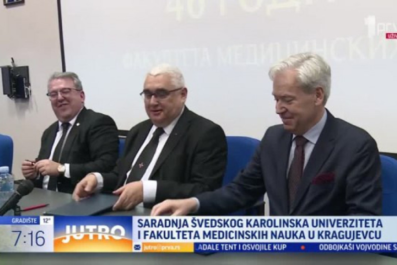 Saradnju uspostavlja sa najvećim institutom, Univerzitetom u Švedskoj i jednim od najznačajnijih Univerziteta koji se bavi medicinskim istraživanjima. A izabran je Kragujevački Medicinski fakultet zbog velikih uspeha i to će biti prvi fakultet van Evropske unije sa kojim uspostavlja saradnju ta značajna obrazovno-naučna ustanova.