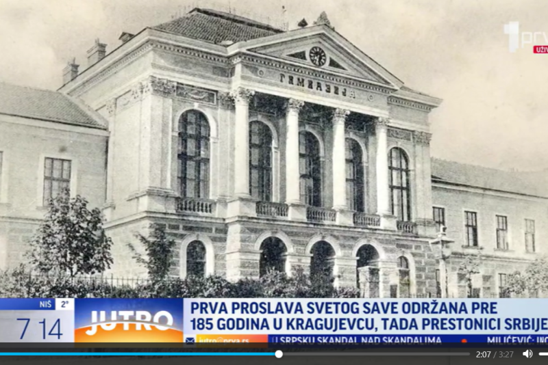 Pre 185 godina u Kragujevcu je Sveti Sava prvi put proslavljen kao školska slava. Kragujevac je tada bio prva prestonica moderne Srbije, tu je izgrađena i prva gimnazija i viša škola koja je bila preteča univerziteta, kao i prva biblioteka.