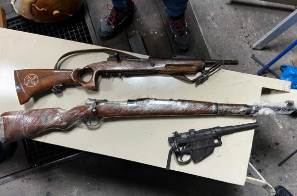 U pomoćnom objektu porodične kuće, policija je osumnjičenom pronašla i oduzela automatsku pušku, dve puške, pištolj-olovku, pištoljski mehanizam bez rukohvata, 591 komad municije različitog kalibra i puščani mehanizam.