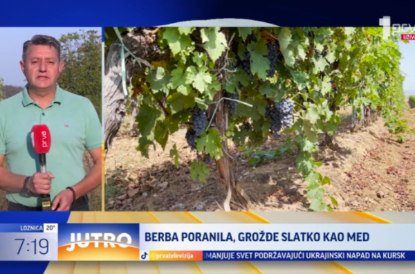 Sunčani dani bez padavina su doprineli da imamo grožđe koje sadrži visok procenat šećera, izuzetno je slatko, i nikada, čak i najstariji vinogradari ovde na jugu ne pamte da su počeli berbu onih nekih vinskih sorti, pogotovo belih vinskih sorti, još negde 10-15. avgusta, znači još pre tri nedelje.