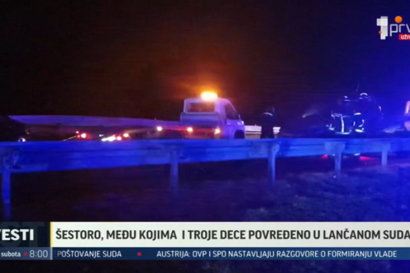 U lančanom sudaru na autoputu Niš-Leskovac, sinoć je povređeno šest osoba, među kojima i troje dece, od jedne do pet godina.