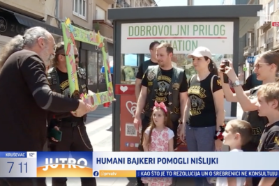 Bajkeri u Nišu pokazali su svoju humanost. Akcijom u centru grada obradovali su najmlađe, a u isto vreme prikupili i pomoć za jednu svoju sugrađanku.