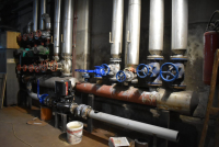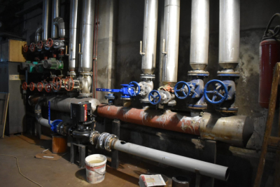 Ministarka zaštite životne sredine Irena Vujović u kotlarnici zgrade Univerziteta u Nišu, koja je već decenijama izvor aero-zagađenja u centru grada, a sad se problem rešava uz podršku Ministarstva.