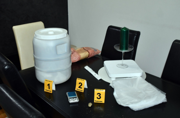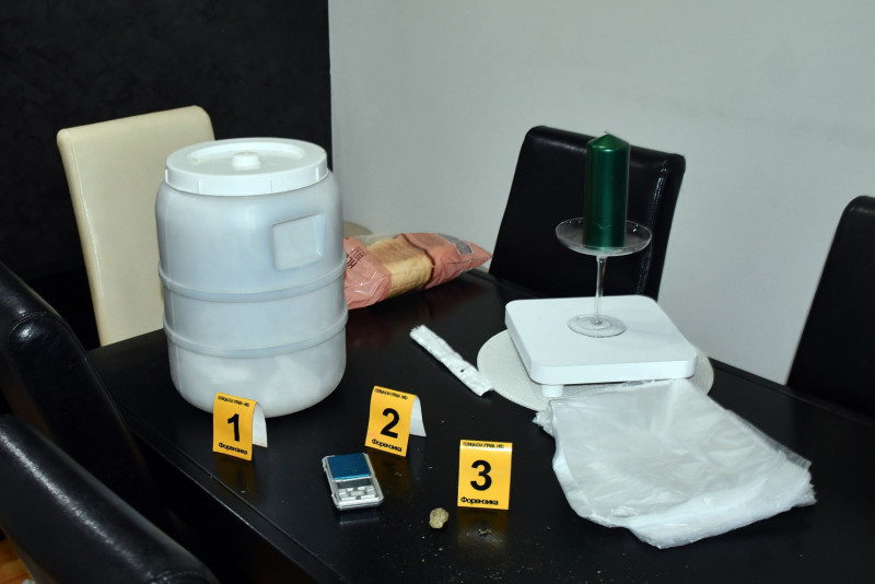 Pretresom stana i drugih prostorija koje A. P. koristi, policija je pronašla sedam paketa sa oko 1,8 kilograma materije za koju se sumnja da je marihuana i vagicu za precizno merenje.