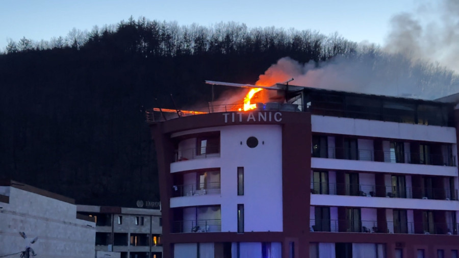 Požar koji je izbio na posljednjem spratu kompleksa Akva Termale, zahvativši restoran Titanik, i dalje je aktivan, ali je trenutno ograničen samo na zadnji sprat, piše Sandžak danas.