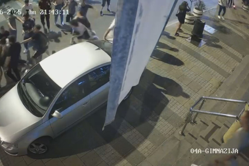 Sigurnosne kamere zabeležile su da grupa mladića koja se najpre verbalno sukobljava, da bi zatim došlo do fizičkog obračuna na trotoaru pored parkiranog automobila.