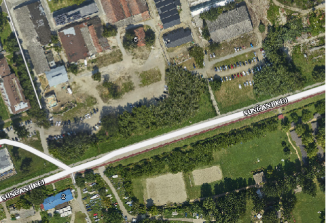 Parking za kamping odmorište nalaziće se u zoni između prostora šetališta nasipa Sunčanog keja i prostora „Kreativnog disktrikta“ pošto se gradska kamping odmorišta postavljaju u neposrednoj blizini gradskih turističkih i kulturoloških atrakcija (starih delova grada, tvrđava, zamkova, bazena, gradskih plaža i sl.)