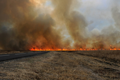 Veliki požar izbio je večeras pored auto-puta između Novog Sada i Siriga. Na mestu događaja vidljiv je gust dim koji dolazi iz pravca njiva.