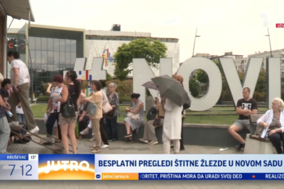 Novosađani koji žele da pregledaju štitnu žlezdu mogu doći ovde ispred državnog centra na Bulevaru cara Lazara gde se mi trenutno i nalazimo i tu u periodu od 13 do 19 časova.