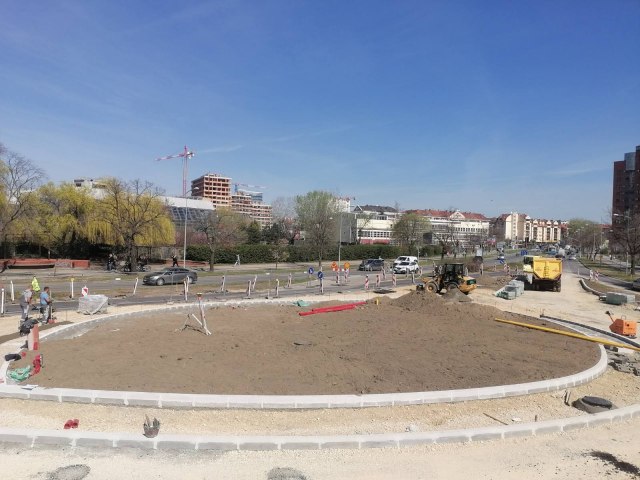 U ovoj fazi radova već su vidljive konture buduće kružne raskrsnice, na kojoj se trenutno postavljaju betonski ivičnjaci.