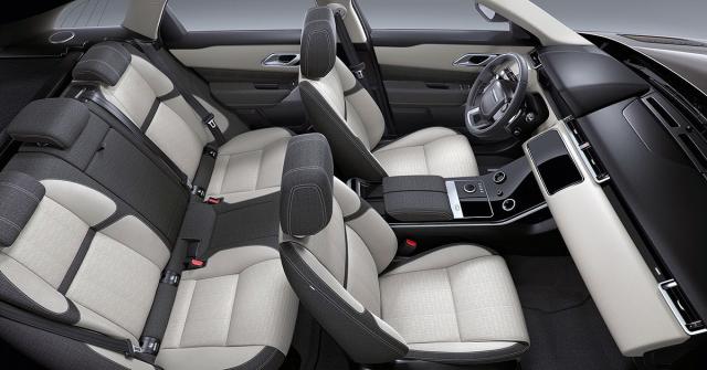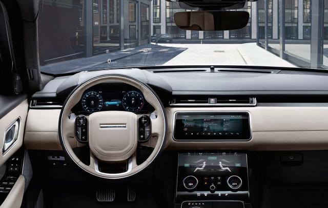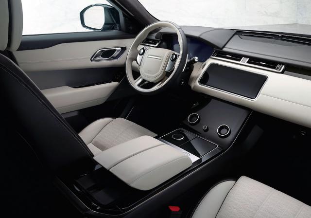 Unutrašnjost Velara je takođe u stilu porodice najnovijih Range Rover vozila, a minimalistički dizajnom, elegantnom kabinom dominiraju dva 10 inčna displeja - jedan na vrhu središnje konzole koji opslužuje multimedijalni sistem, ali i mnoge druge funkcije na automobiliu, i drugi, ispod njega, pomoću kojeg se upravlja klimatizacijom i ventilacijom u automobilu.