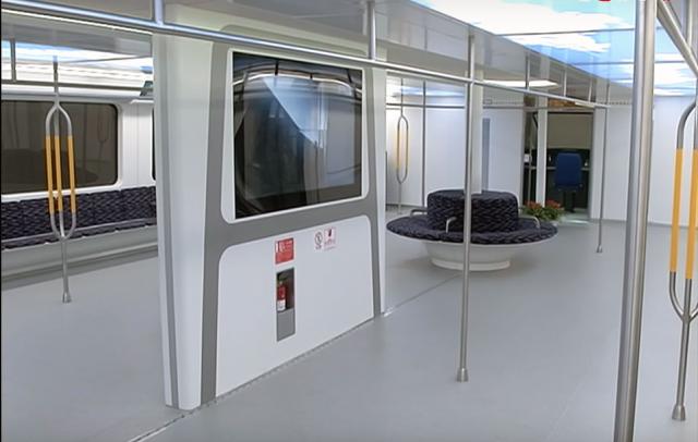 Unutrašnjost izdignutog džinovskog autobusa podseæa na ogromnu kabinu metro vagona (Screenshot YouTube)