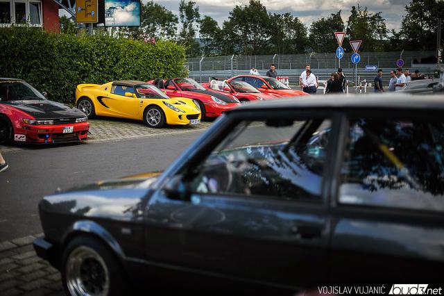 Samo taj prvi dolazak do centralne zgrade je, zbog prelivanja emocija, bio naporan sam po sebi. Gledaš levo-desno, jedva držiš pravu liniju, dok pored tebe prolazi sve što auto-industrija ima da ponudi. Prizor velikog crvenog natpisa "Nurburgring" na zgradi razvukao nam je osmehe od uva do uva.