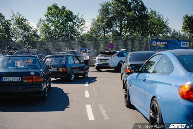 U nedelju je staza bila otvorena tokom celog dana i to je bio zicer za nas. Danas vozimo! Stižemo na isto mesto kao i juče, a tamo... Stotine automobila čeka ulaz na stazu. Sve tablice Zapadne Evrope su bile tu. Znate kako izgleda Bubanj potok nedeljom? Ta količina automobila je bila tamo.