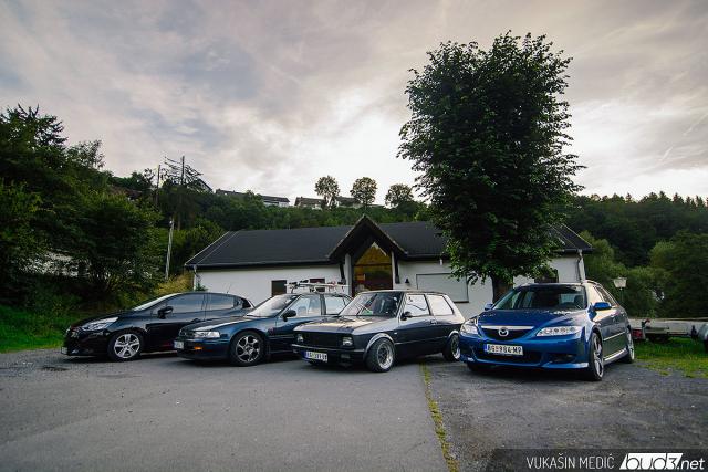 Voćko je upregao Mazdu, spremio kuku, nakačio osamnaestice i muški istestirao sposobnosti auta. Kako na Nirburgringu, tako i na putu, vukući prikolicu sa jugom. Nevoljno sam i ja krenuo sa svojih 900cc na taj put. Ispostavilo se da je svaka odluka bila ispravna, a da bi svaka druga kombinacija bila fail.