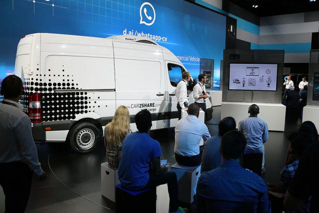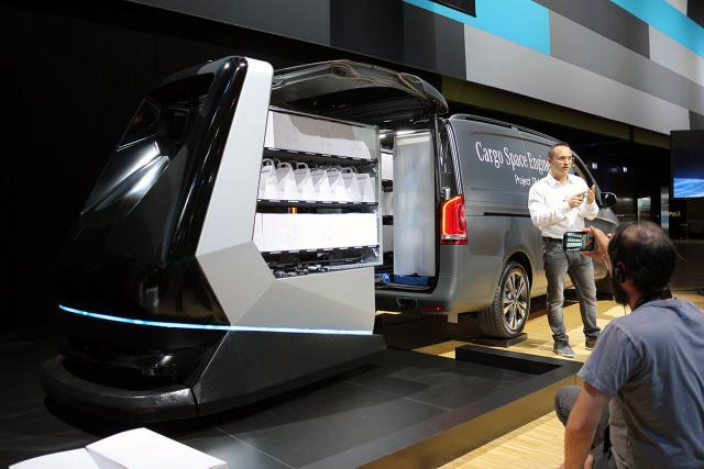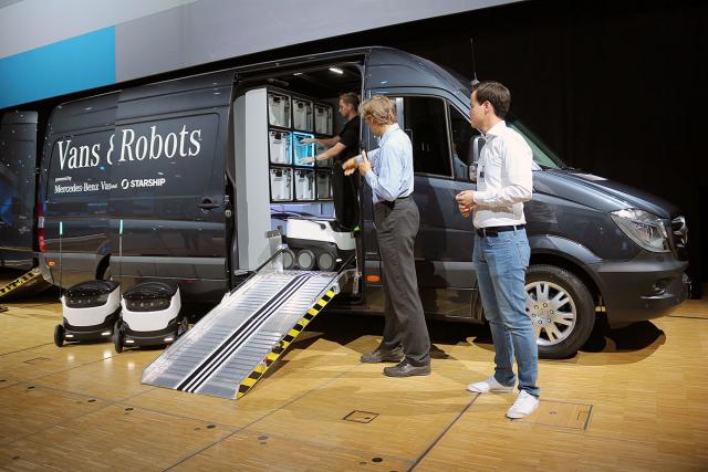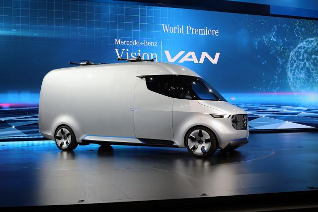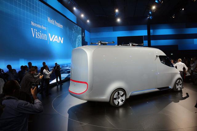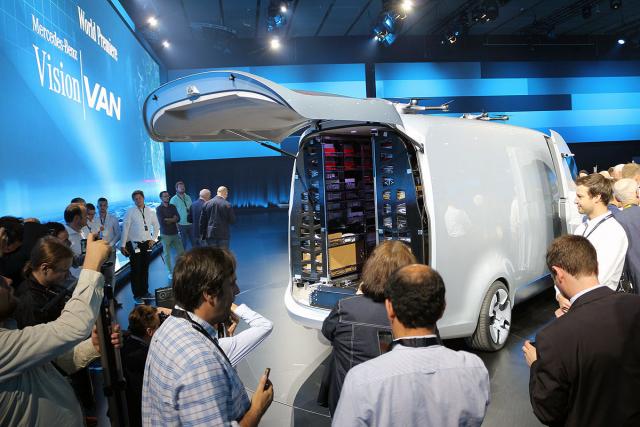 Tokom pauze za ručak, domaćini su potpuno preuredili sajamsku halu i u stilu glamuroznih svetskih premijera, što ovo zapravo i jeste, na scenu je izašao kombi budućnosti pod nazivom Mercedes Vision Van.