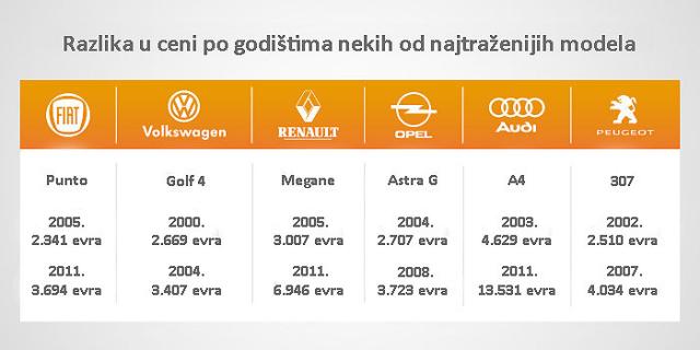 Ipak, barem statistički gledano, situacija je za nijansu povoljnija u odnosu na 2015. godinu, kada su najtraženiji polovni automobili u Srbiji bili oni do 2.000 evra, dok su drugom mestu po tražnji bila vozila čija je cena do 1.000 evra, a na trećem automobili koji koštaju do 1.500 evra.