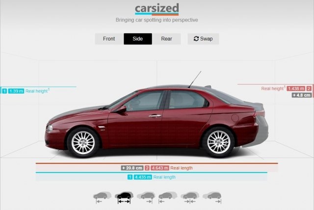 Takođe, ovaj sajt vam omogućava i da uporedite dimenzije aktuelnih modela iz različitih segmenata.
