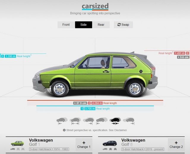 A Volkswagen u tome nije izuzetak. Na stranici carsized.com tako možete uporediti brojne modele različitih godišta i lično se uveriti kolike su razlike u dimenzijama.