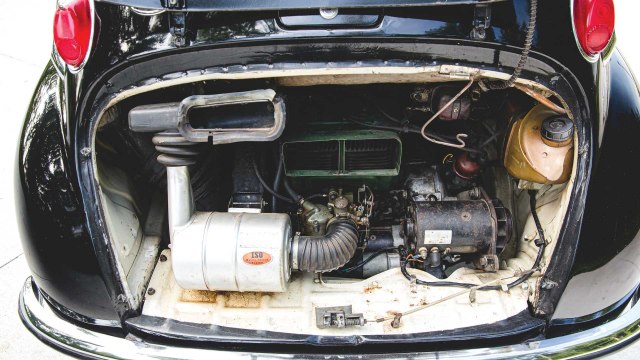 Automobil je imao svega oko 450 kg i dvotaktni motor sa dva cilindra iza zadnjih sedišta.