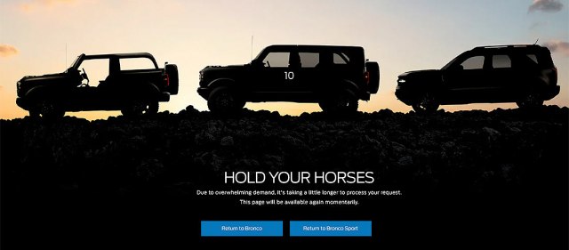 Ako je suditi prema prvim reakcijama kupaca, čini se da je američki proizvođač svojim novim terencem pogodio u centar mete. Naime, ubrzo nakon što je Bronco predstavljen javnosti, američki kupci su požurili da izvrše rezervaciju, pa je na sajtu nastalo zagušenje.