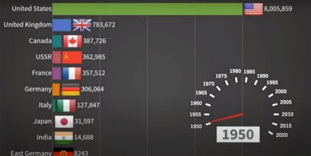 Lista prvih 10 država na svetu po broju napravljenih automobila se znatno razlikovala te 1950. godine, kojom počinje video na YouTube kanalu Data is Beautiful Stats gde je prikazana animirana tabela top-10 najvećih proizvođača u poslednjih sedam decenija, prenosi sajt AutoRepublika.