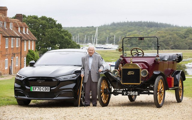 Stogodišnjak iz Velike Britanije dobio je priliku da se provoza u savremenom električnom Fordu Mustang Mach-E.