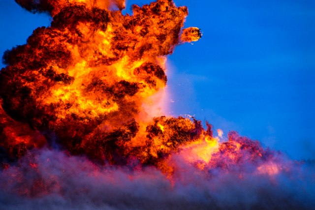 Auto je parkirao ispod stenovite litice, a kamere visoke rezolucije i usporena kamera zabeležile su eksploziju koja je usledila.