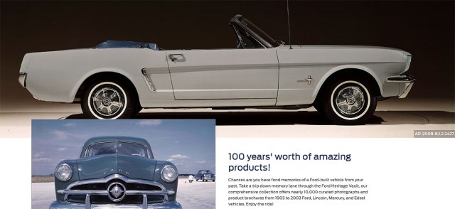 Odeljenje Forda koje se bavi nasleđem kompanije otvorilo je ovog leta svoju arhivu i učinilo više od 5.000 fotografija istorijskih modela dostupnim javnosti.