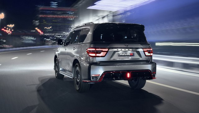 Patrol Nismo stoji na točkovima prečnika 22 inča, a da nije reč o običnom terencu svedoče ukrasni i aerodinamčki dodaci na karoseriji, kao i drugačiji branici, te crveni detalji koji ističu sportski karakter vozila.