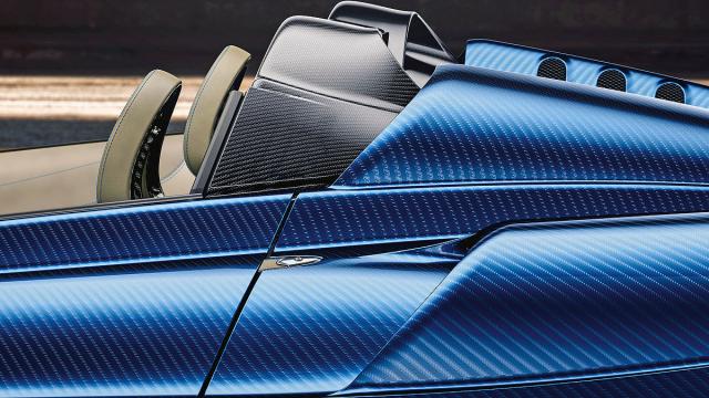 Roadster je preuzeo osnovne stilske elemente od regularne Huayre, a na prvim fotografijama predstavljen je u plavoj boji koja dodatno ističe teksturu ugljeničnih vlakana od kojih je izrađena karoserija automobila.