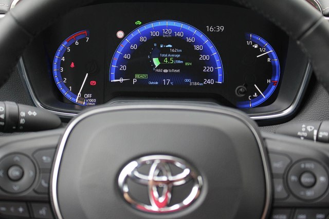 Ovo je prva Toyota sa 1.8 hibridom koja je dobila obrtomer. Pozadina mu je digitalna, ali je kazaljka analogna, kao i u slučaju pokazivača preostale količine goriva i temperature rashladne tečnosti.