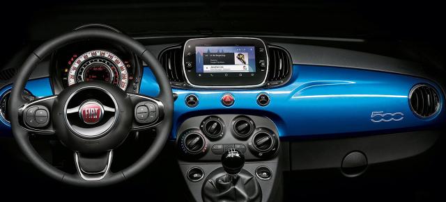 Standardna oprema modela 500 Mirror uključuje Uconnect 7” HD LIVE multimedijalni uređaj sa ekranom osetljivim na dodir, Bluetooth konekciju, USB-AUX IN priključke i integrisane komande na upravljaču koji je presvučen kožom.
