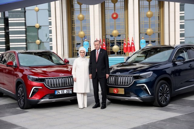 "Od danas počinjemo da viđamo Togg na putevima", rekao je Erdogan primajući prvi primerak modela Togg T10X na ceremoniji u kompleksu Predsedničke palate u Ankari.