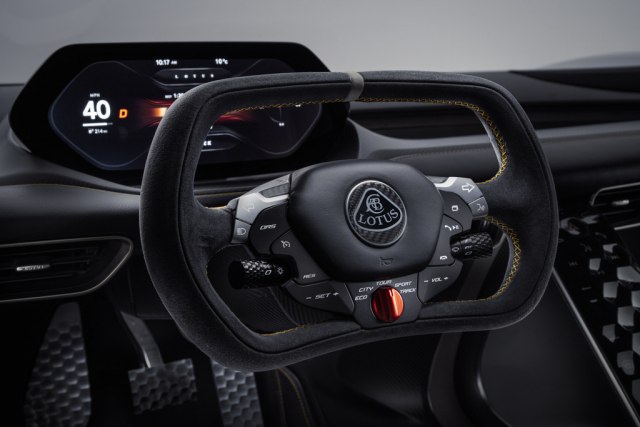 Važno pitanje, s obzirom da je u pitanju EV, je i autonomija. U Lotusu očekuju da to bude oko 400 km između punjenja, ali što je još bitnije kompletna dopuna baterije bi trebalo da traje manje od 10 minuta!