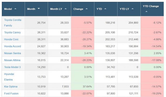 Prema podacima koje je objavio američki GoodCarBadCar, Model 3 je ušao na listu 10 najprodavanijih putničkih automobila u SAD i našao se na 7. poziciji sa 14.250 prodatih jedinica.