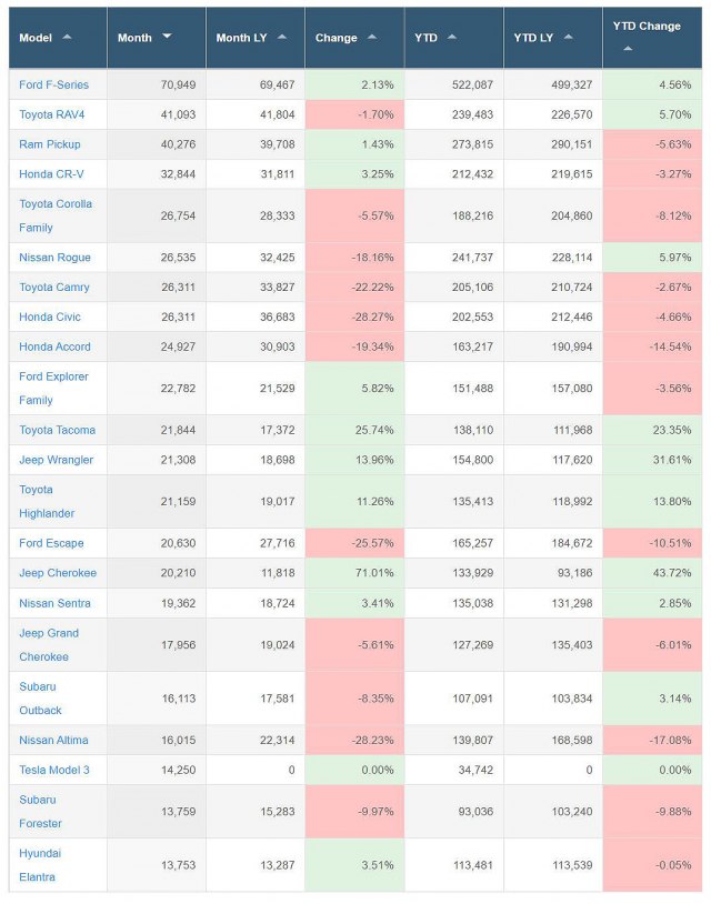 Ipak, treba napomenuti da na mesečnoj listi GoodCarBadCar nisu prikazani modeli General Motorsa, s obzirom da ta kompanija svoje prodajne rezultate objavljuje kvartalno.