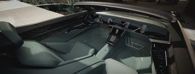 Enterijer najbolje opisuju priložene fotografije, a Audi objašnjava da u formi GT automobila, kad je predviđeno autonomno upravljanje vozilom, celu komandnu tablu prekriva digitalni ekran širine 55,7 inča, odnosno 1.415 mm.