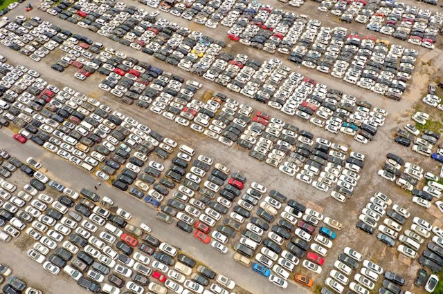 Na ovom snimku videćete stotine uništenih automobila u poplavama u Kini.