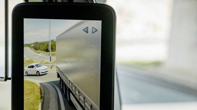 Nemački proizvođač opremio je novu generaciju kamiona-šlepera Actros sistemom spoljnih kamera i unutrašnjih displeja koji menjaju klasične retrovizore sa ogledalima.