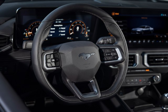 Enterijer je izveden po uzoru na evropske modele sličnih performansi. Mnogi vide uticaj BMW-a, a Ford spominje 12,4-inčni digitalnu instrument tablu kao i 13,2-inčni ekran multimedijalnog sistema sa SYNC 4 sistemom. Nije retro kao što bi trebalo biti, ali takva je današnja moda.