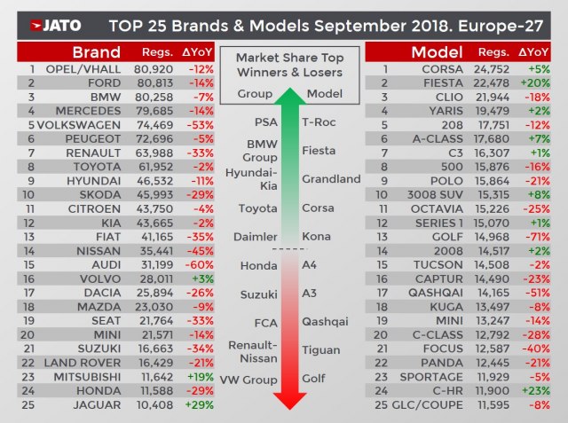 Novi standardi testiranja emisije gasova i potrošnje (WLTP) oborili su prodaju u Evropi, te doneli velike promene u "trci" najpopularnijih modela na "Starom kontinentu".