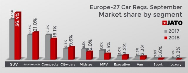 Najviše automobila tokom septembra prodato je u Velikoj Britaniji 338.834, a "šestocifreni" su bili još samo Nemci (200.133), Francuzi (148.279) i Italijani (125.319).