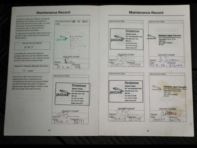 Njen Jaguar je uredno servisiran, što se može videti i u originalnoj servisnoj knjižici.