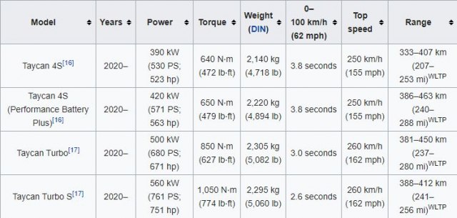 Osnovna verzija nosi oznaku 4S, koja dolazi i sa snažnijom baterijom (Performance Battery Plus), dok se između 4S i Turbo S nalazi verzija Turbo.