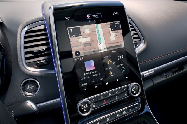 Espace za 2020. opremljen je i najnovijom generacijom multimedijalnog sistema Easy Connect sa 9,3-inčnim ekranom, te Apple CarPlay i Android Auto funkcijama. Tu je i 10,2-inčna digitalna instrument tabla sa 3D navigacijom.