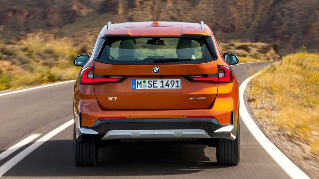 LED svetla su standardna i napred i pozadi, a stop svetla dobijaju novi profil u obliku slova L. Pozadi, uži zadnji prozor daje novom X1 robusniji izgled, dok prošireni lukovi točkova naglašavaju njegovu širinu.